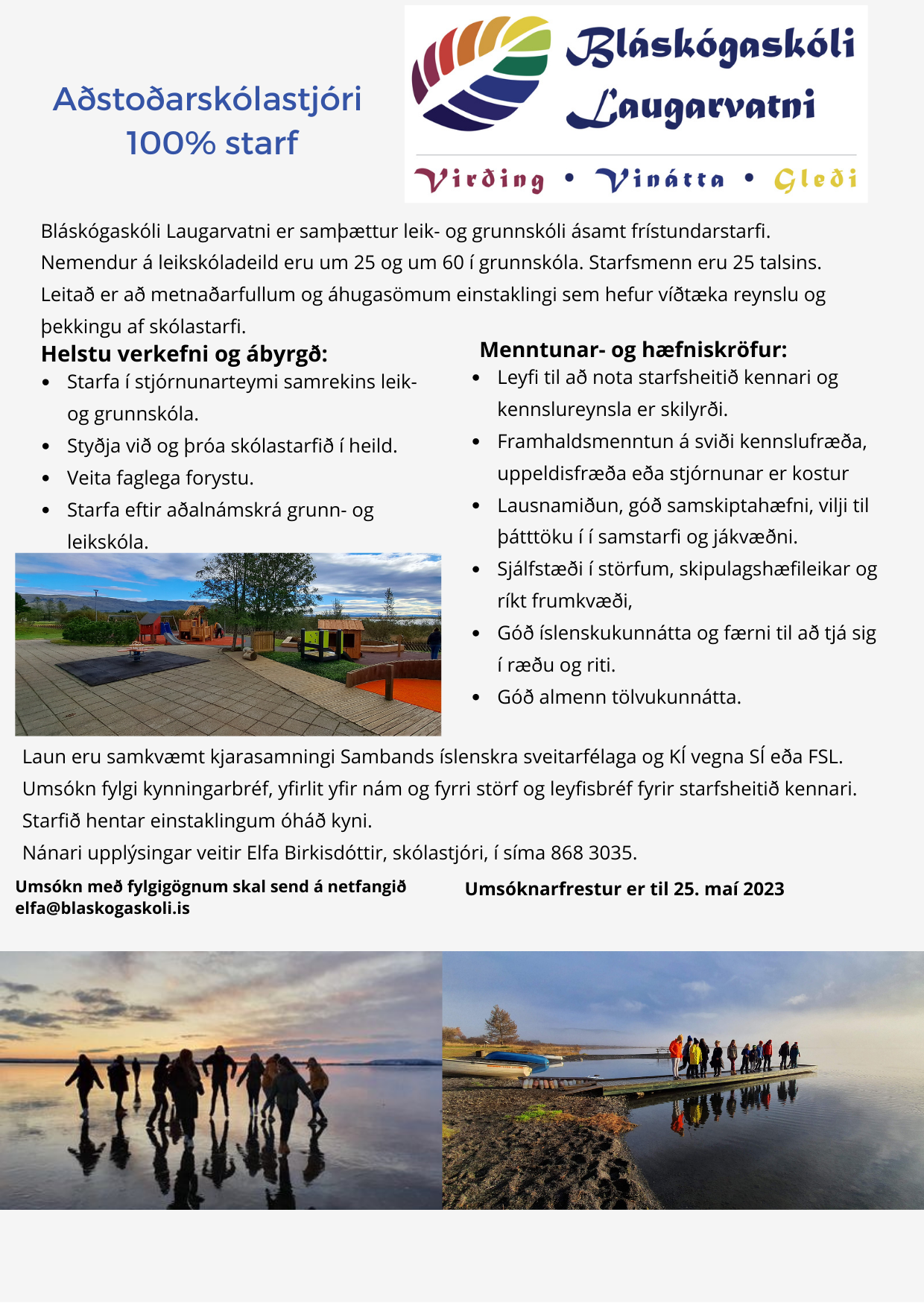 Aðstoðarskólastjóri í Bláskógaskóla Laugarvatni 100% starf