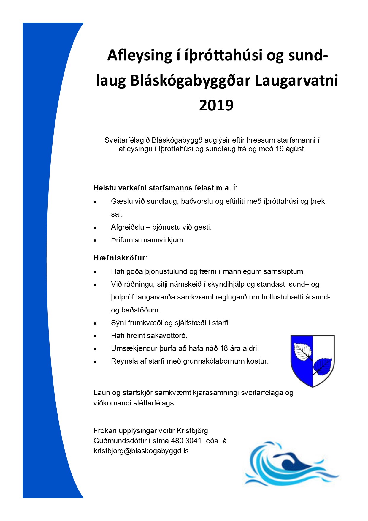 Afleysingarstarf í sundlaug og íþróttahúsinu á Laugarvatni