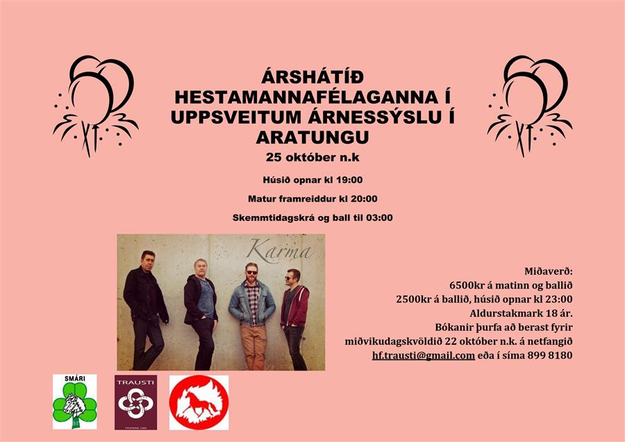 Árshátíð hestamannafélaganna í uppsveitum Árnessýslu í Aratungu 25. október n.k.