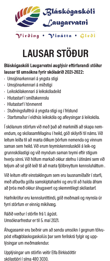 Bláskógaskólinn á Laugarvatni lausar stöður