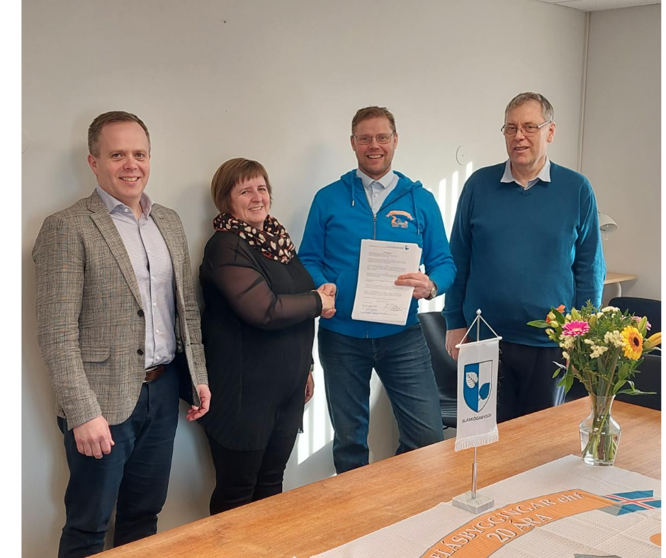 Verksamningur Selásbygginga ehf við Bláskógabyggð vegna byggingar skrifstofuhúsnæðis fyrir UTU á Laugarvatni hefur verið undirritaður. Tilboð Selásbygginga í verkið nam 183,9 millj.kr. og eru verklok áætluð 1. mars 2024. Á myndinni eru Helgi Kjartansson, oddviti, Ásta Stefánsdóttir, sveitarstjóri, Hákon Páll Gunnlaugsson, framkvæmdastjóri Selásbygginga ehf og Kristófer A. Tómasson, sviðsstjóri framkvæmda- og veitusviðs.