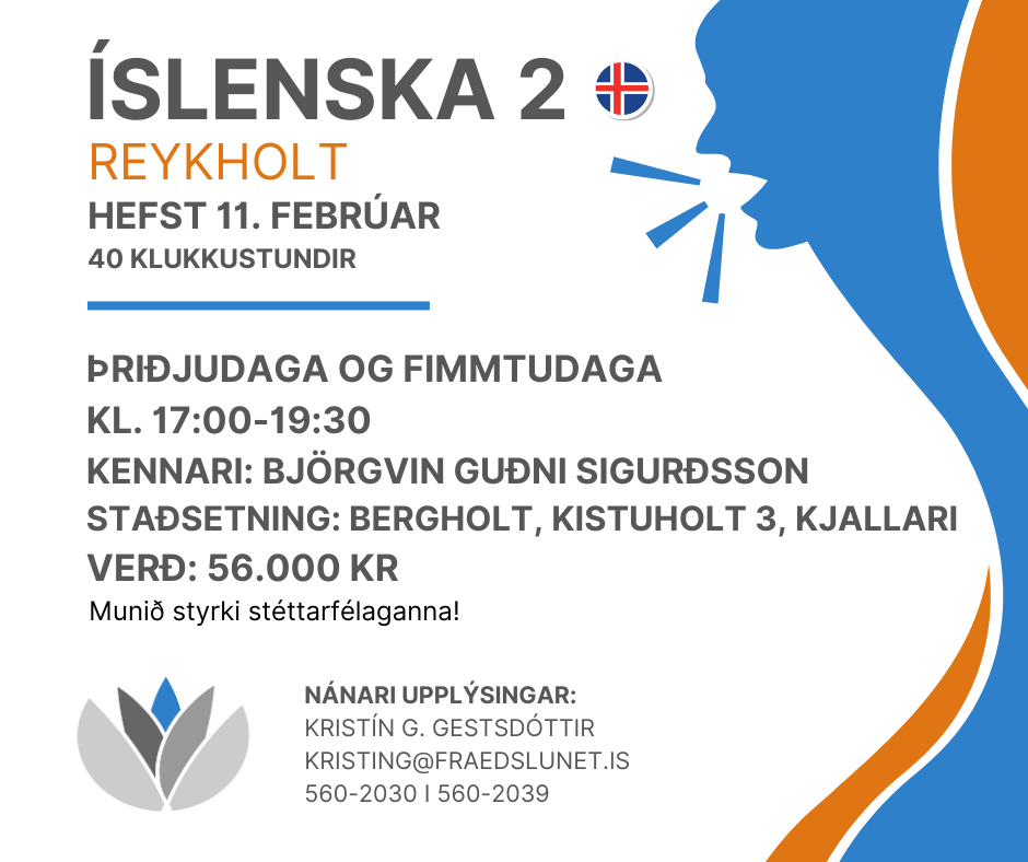 Fræðslunetið símenntun á Suðurlandi is holding a course in Reykholt on February 11th.