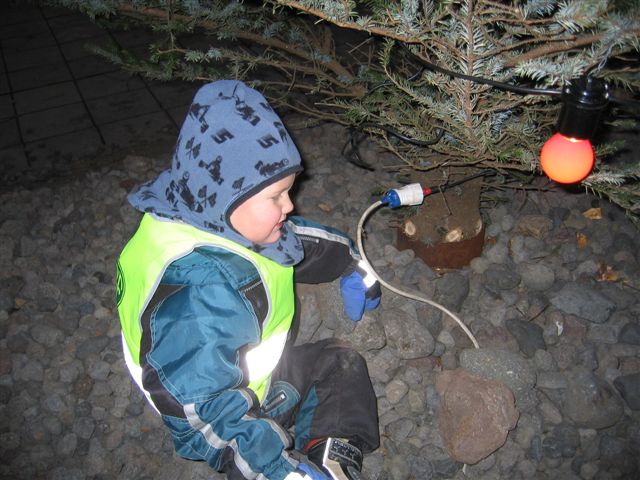 Kveikt var á jólatrénu við Aratungu fimmtudaginn 30. nóv. s.l. Perla Smáradóttir tók þessar myndir við það tækifæri. Hringur Karlsson heitir litli drengurinn sem setti seríuna í samband.