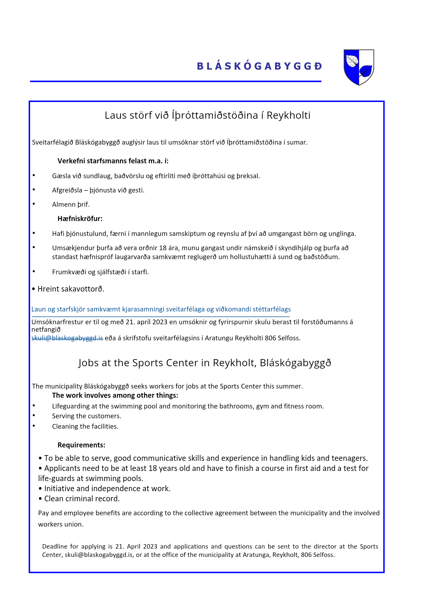 Starfsmenn skrifstofu og framkvæmda- og veitusviðs