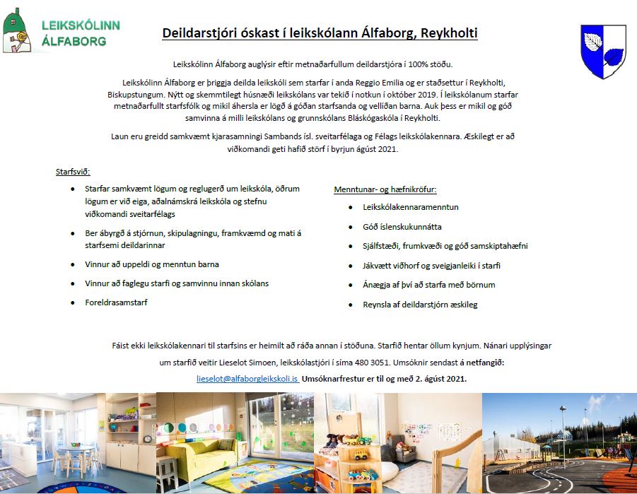 Leikskólinn Álfaborg auglýsir eftir deildarstjóra