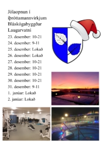 Opnunartímar yfir jól og áramót í íþróttamannvirkjum Bláskógabyggðar á Laugarvatni