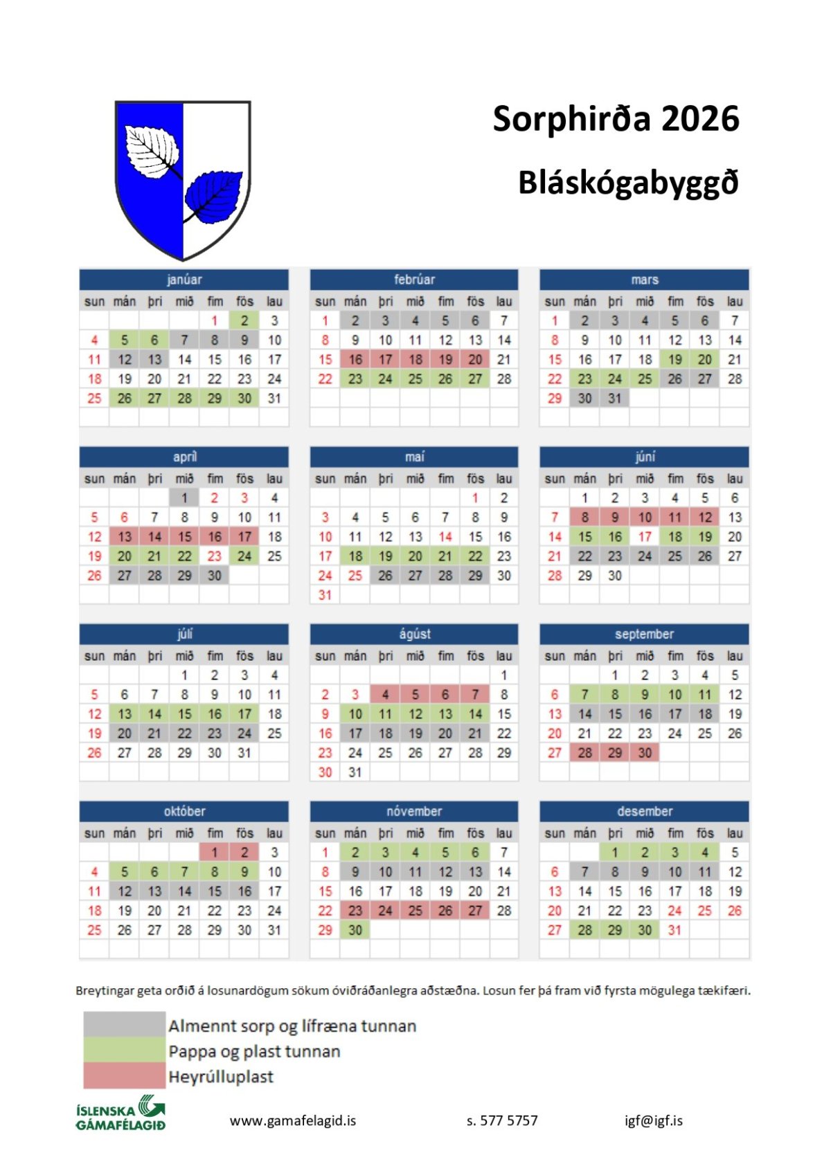 Sorphirðudagatal 2026