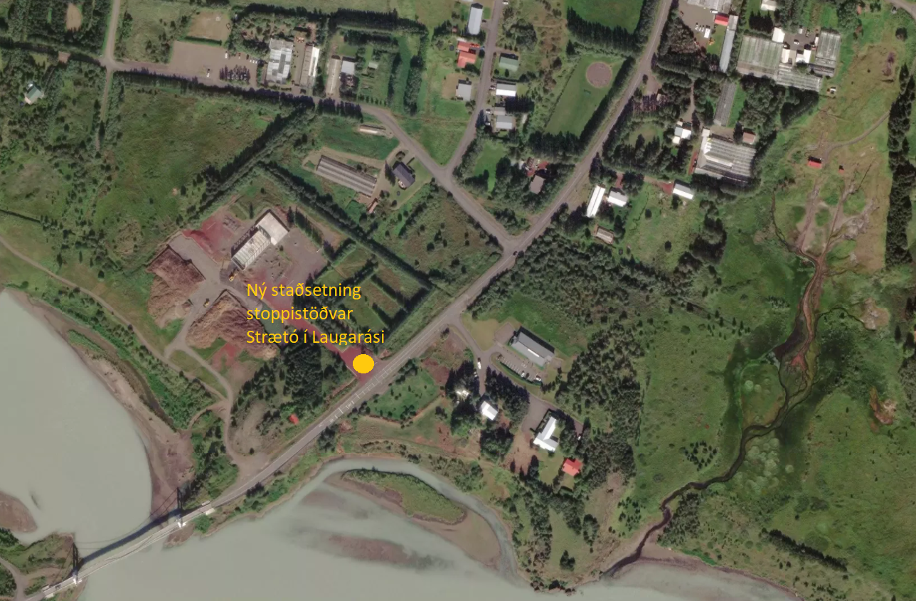 Mánudaginn 23. ágúst mun stoppistöð Strætó í Laugarási fyrir leiðir 72 og 73 vera færð á nýjan stað, um 350 metrum frá núverandi stoppistöð. Hér fyrir neðan má sjá nýja staðsetningu stöðvarinnar: