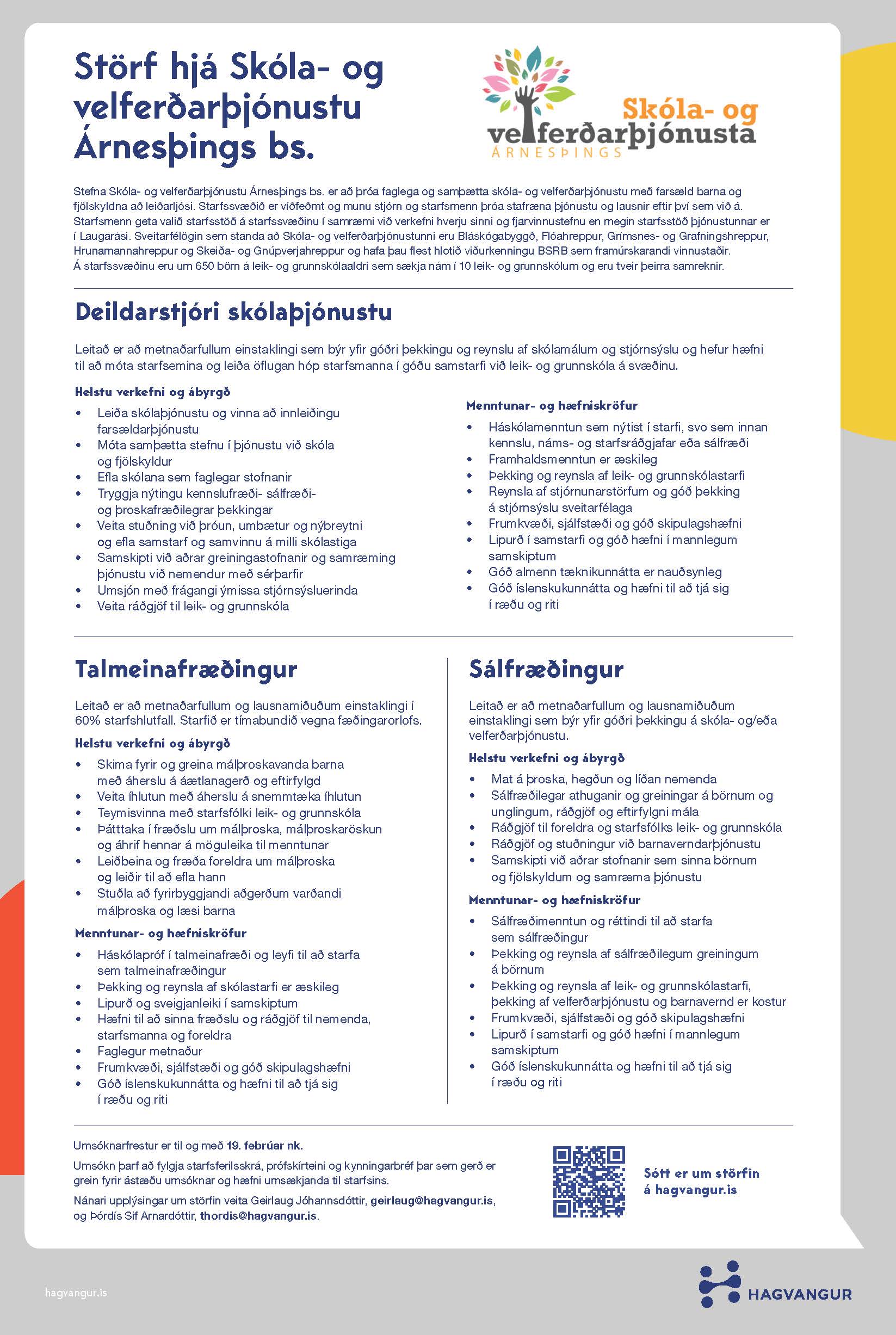 Störf hjá Skóla- og velferðarþjónustu Árnesþings bs.