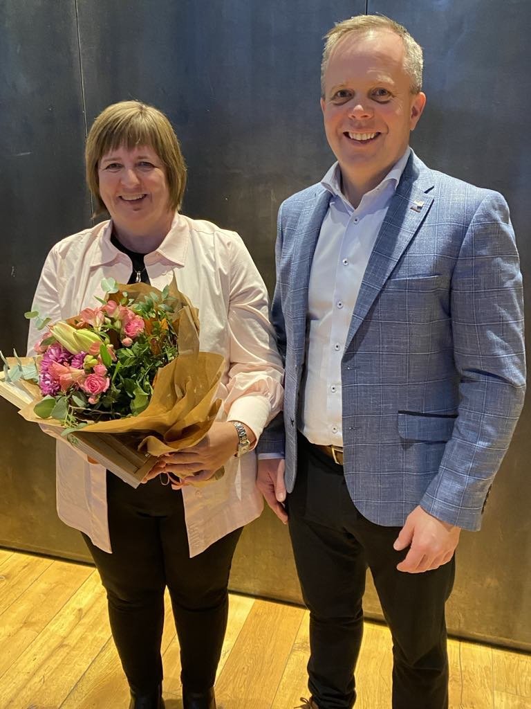 Á myndinni eru Ásta Stefánsdóttir, sveitarstjóri, og Helgi Kjartansson, oddviti, við afhendingu viðurkenningarinnar.