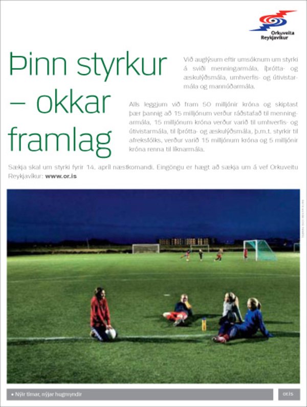 Orkuveita Reykjavíkur hefur auglýst eftir umsóknum um styrki á ýmsum sviðum samfélagsmála. Alls leggur fyrirtækið 50 milljónir króna til slíkra styrkja í ár.