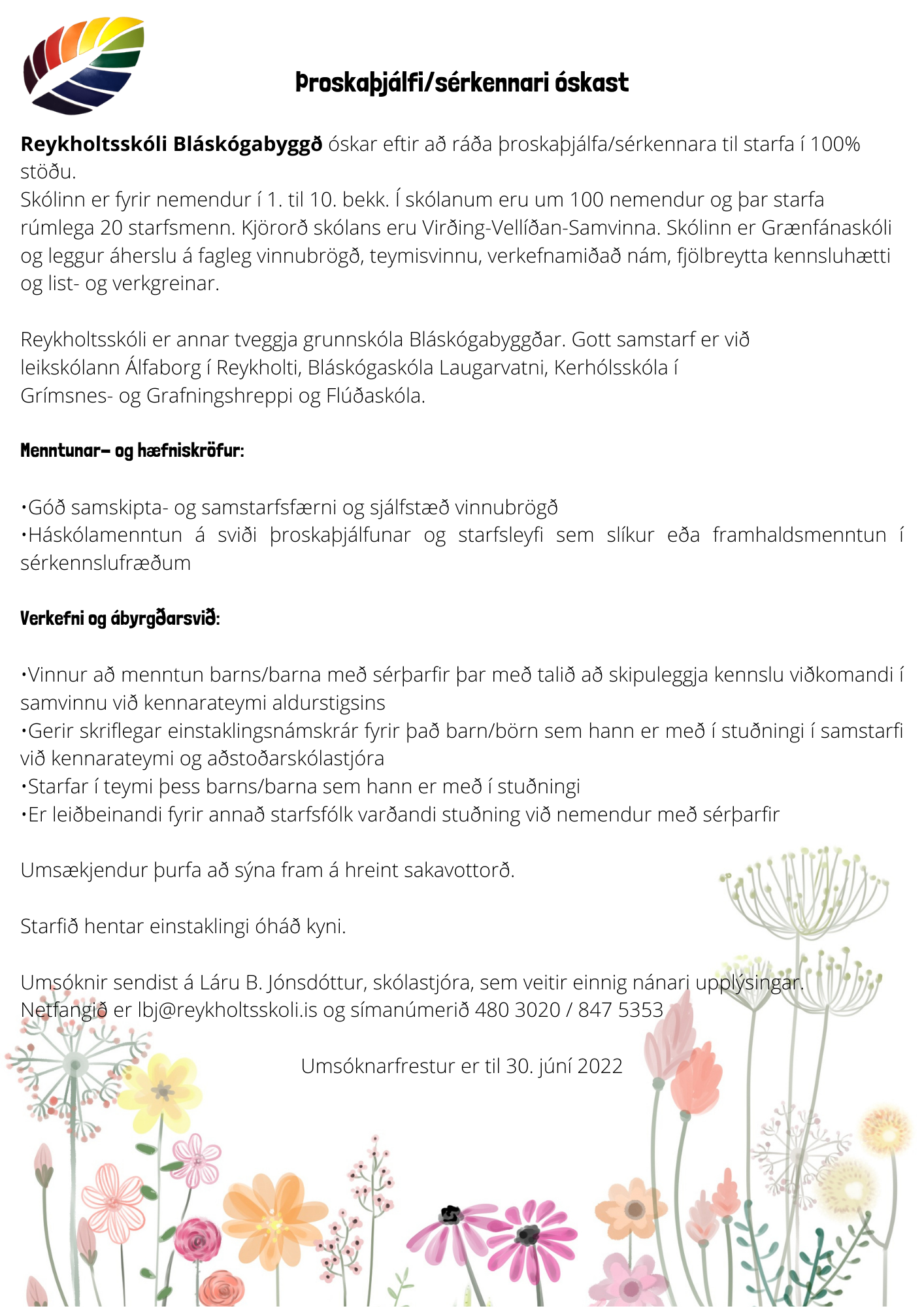 Þroskaþjálfi / sérkennari óskast í Reykholtsskóla