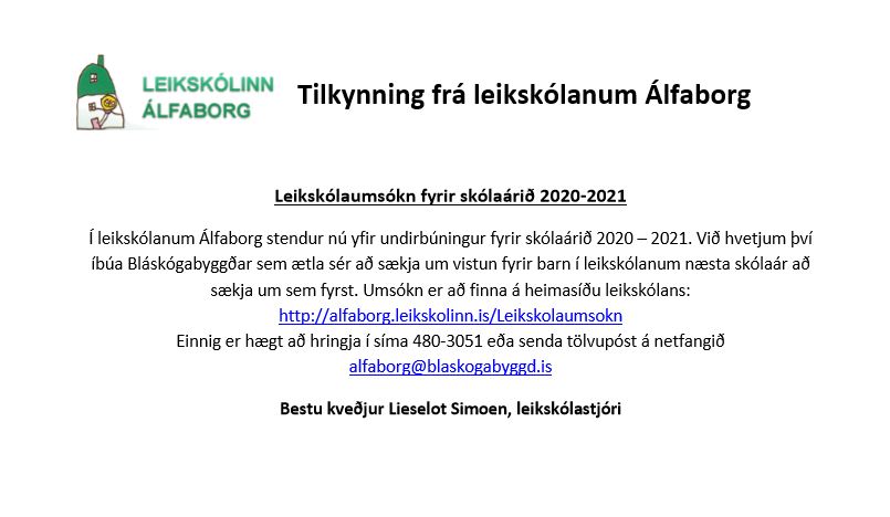 Tilkynning frá leikskólanum Álfaborg