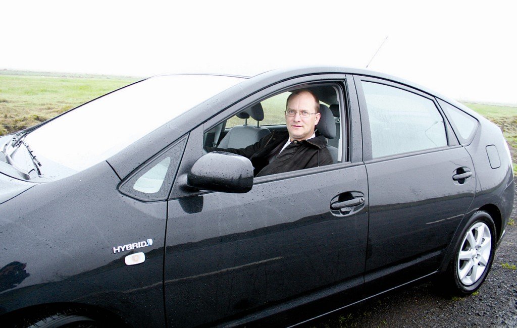 Umhverfið Valtýr Valtýsson, sveitarstjóri í Bláskógabyggð, leggur sitt af mörkum til að bæta umhverfið og ekur um á umhverfisvænum bíl, Toyota Prius twin.